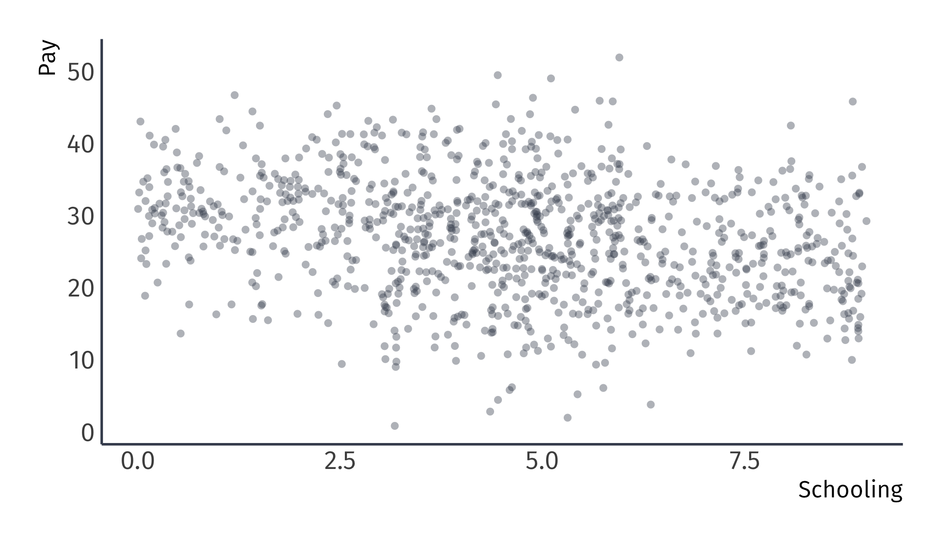 \[ \text{Pay}_i = \beta_0 + \beta_1 \text{School}_i + u_i \]