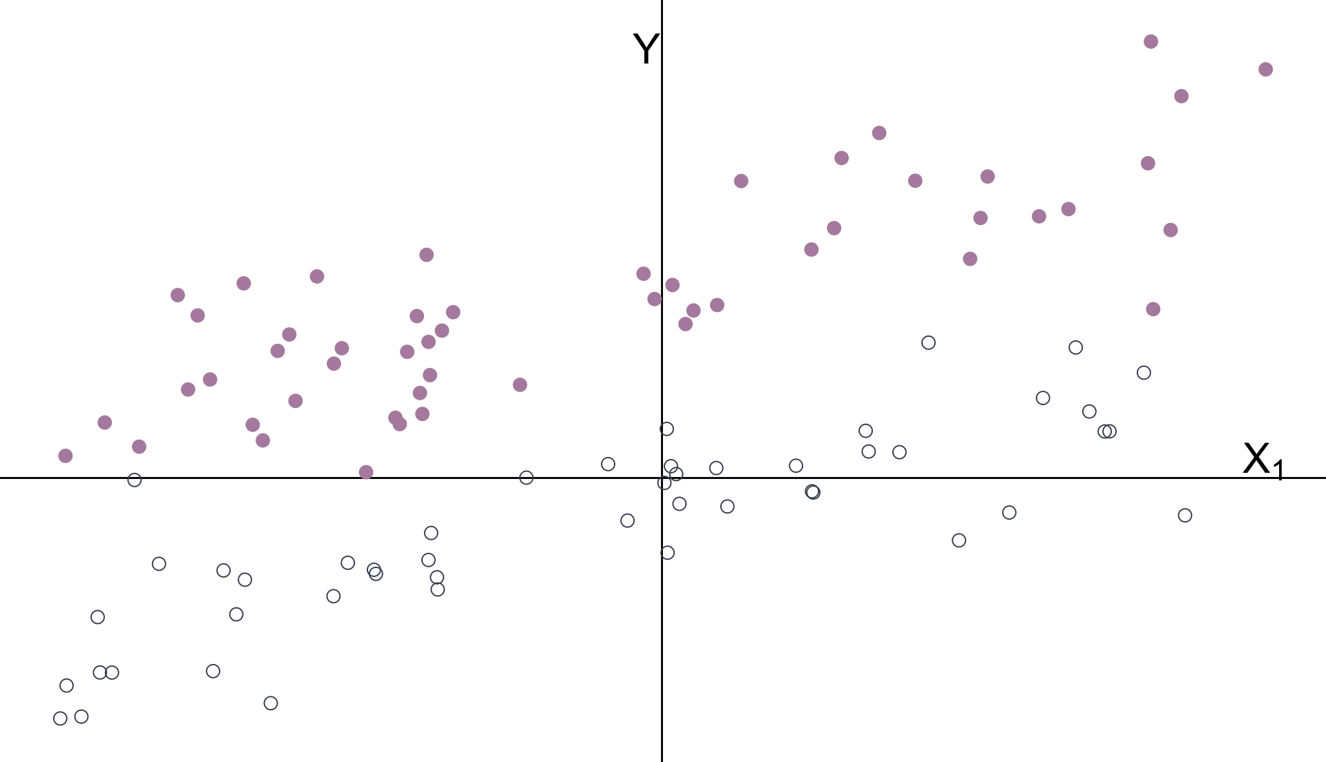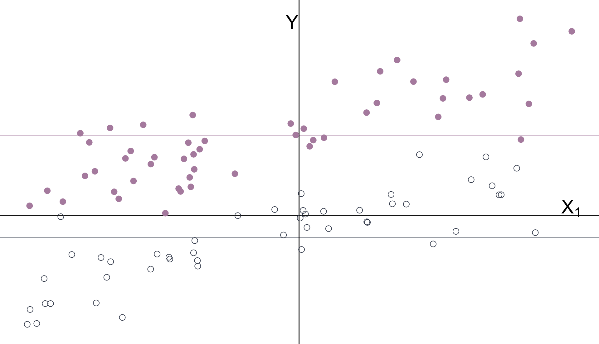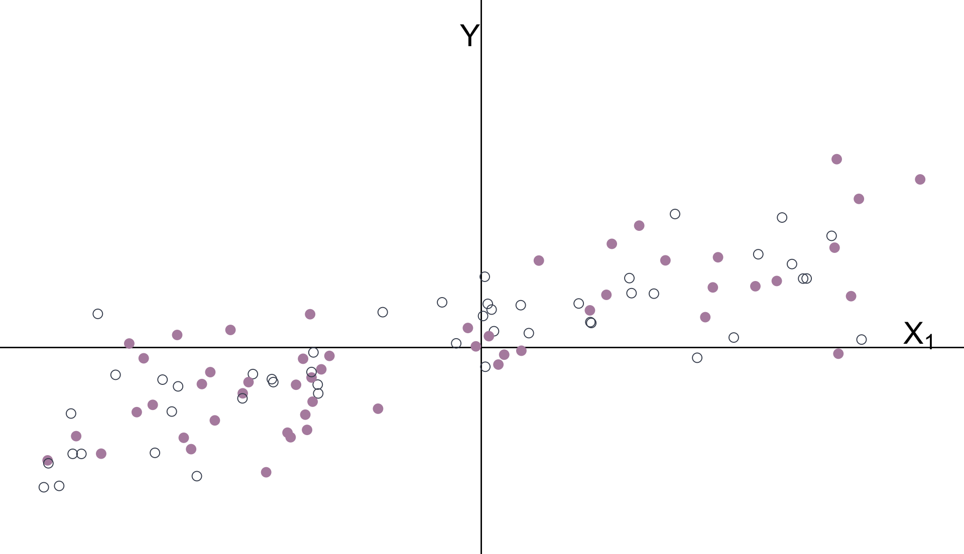 \(Y_i = \beta_0 + \beta_1 X_i + u_i\) for binary variable \(X_i = \{\color{#434C5E}{0}, \, {\color{#B48EAD}{1}}\}\)